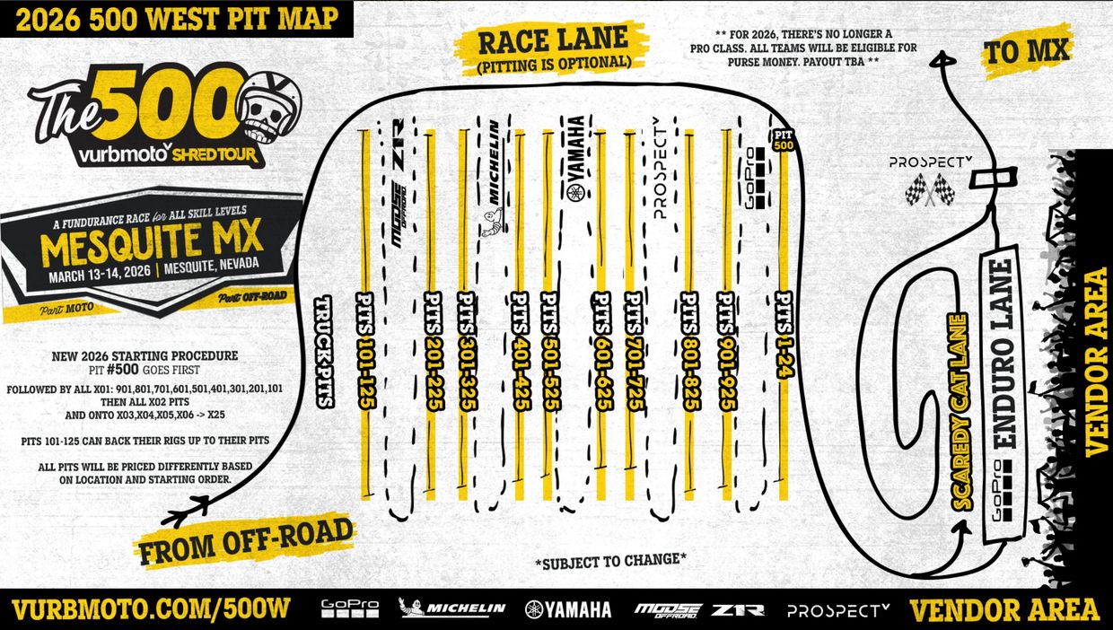 The 500 would not be possible without the support of GoPro, FMF, Michelin and MotoSport.